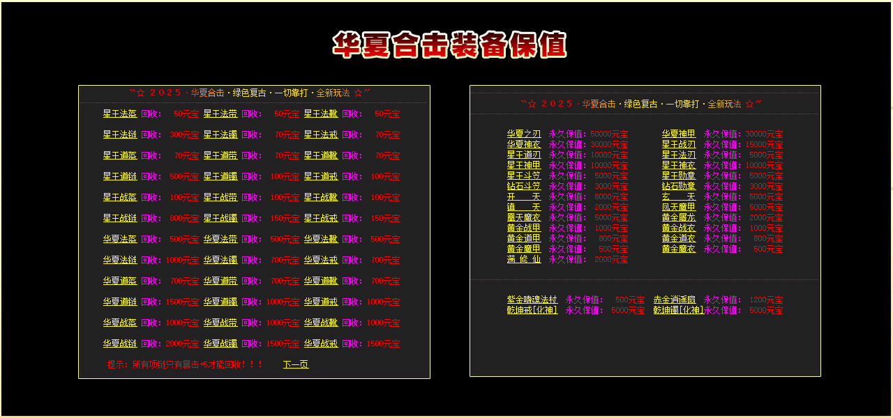 版本介绍 品牌大服 激情无限 【版本介绍】充值1:10 本服唯一消费:顶赞100 自动挂机 无沙捐 【开区时间】每日开区。晚上20:00正式开区 【装备介绍】赤月-雷霆-强化雷霆-战神-星王-华夏 【福利待遇】测试区打到的首爆奖励.正式区全额领取 【拿沙奖励】每区拿沙奖励:10000 【YY频道ID】1457595139 ENGLISH WORES ENGLISH WORES ENGLISH WORES